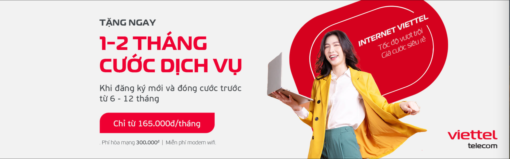 Viettel khuyến mãi hấp dẫn đăng ký lắp đặt internet Viettel. Khuyến mãi các gói cướcinternet cáp quang giá rẻ dao động từ 180.000 VNĐ – 330.000 VNĐ tốc độ đường truyền cáp quang cao lên đến 1Gbps đáp ứng tốt các nhu cầu học tập, làm việc và giải trí của quý khách hàng.